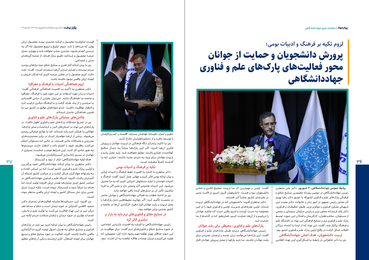 ✔️ پرورش دانشجویان و حمایت از جوانان محور فعالیتهای پارکهای علم و فناوری جهاددانشگاهی