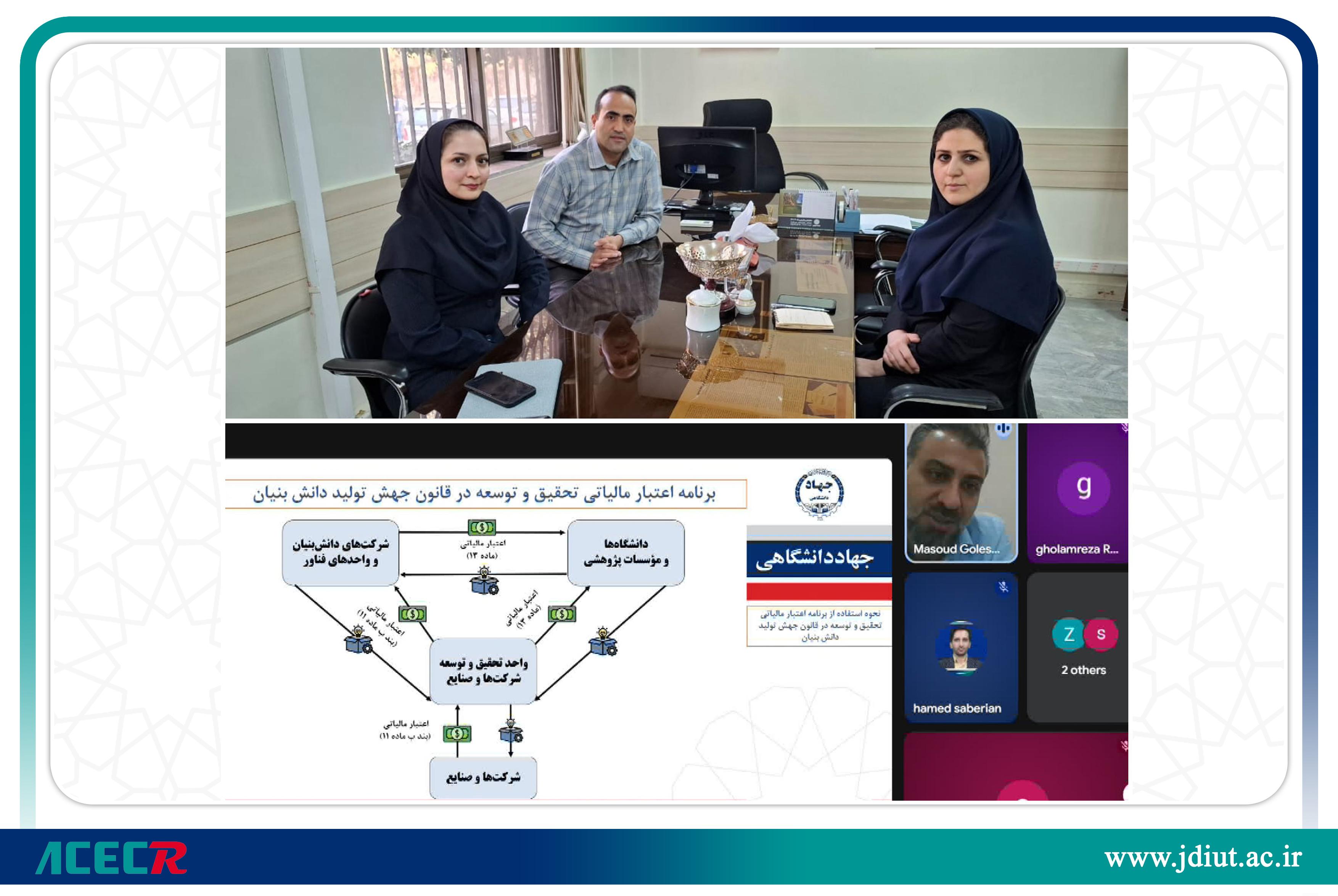 در ادامه این تعاملات، وبیناری تخصصی با موضوع «اعتبار مالیاتی تحقیق و توسعه» از سوی واحد خراسان رضوی برای کارشناسان و مدیران جهاد دانشگاهی واحد صنعتی اصفهان برگزار شد. در این نشست، مفاد بند «ب» ماده ۱۱ قانون جهش تولید دانشبنیان تشریح شد؛ بر اساس این قانون، هزینههای انجامشده در فعالیتهای تحقیق و توسعه شرکتها به عنوان اعتبار مالیاتی قابل انتقال به سنوات آتی لحاظ میشود و از مالیات قطعی همان سال یا سالهای بعد کسر خواهد شد.