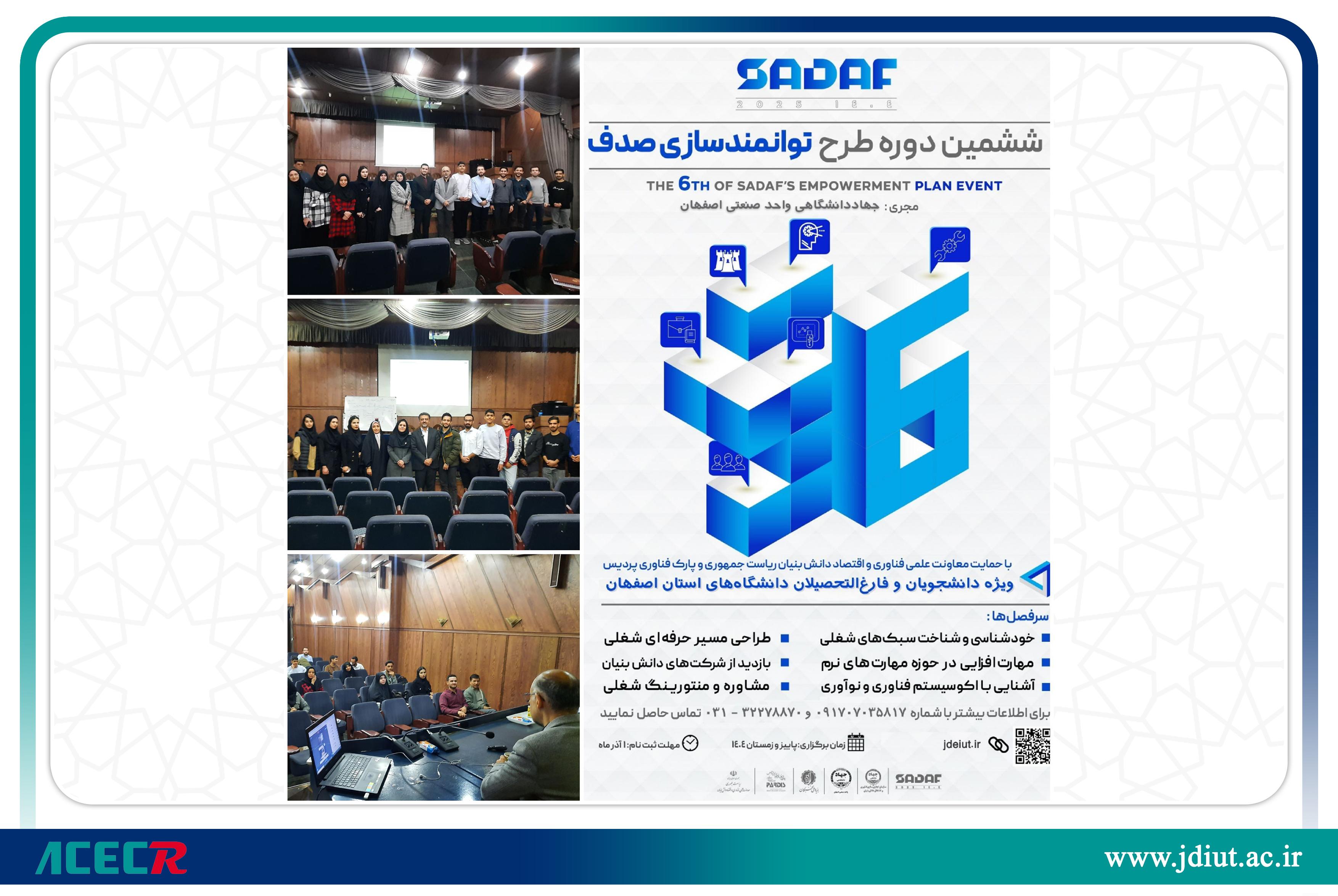 برگزاری ششمین دوره طرح توانمندساز «صدف» در اصفهان به همت جهاددانشگاهی واحد صنعتی اصفهان